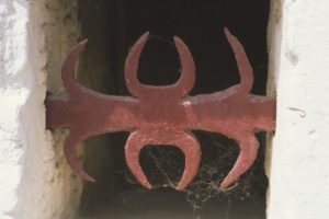 Torgny : le soupirail d’une cave obstrué par un peigne à sorcière. Il était censé en interdire l’accès au « malin »