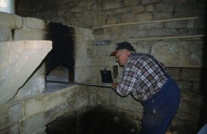 Torgny : cuisson du pain au four banal (photo 2001). C’était un équipement communautaire au temps où les maisons n’avaient pas encore de four individuel.