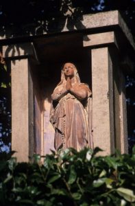 Torgny : vierge surplombant le monument de l’Escargot, face à l’ermitage.