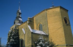 Rouvroy : l’église détruite en 1856 à la suite d’un incendie porte sur son portail un millésime de 1709, date probable de sa transformation.